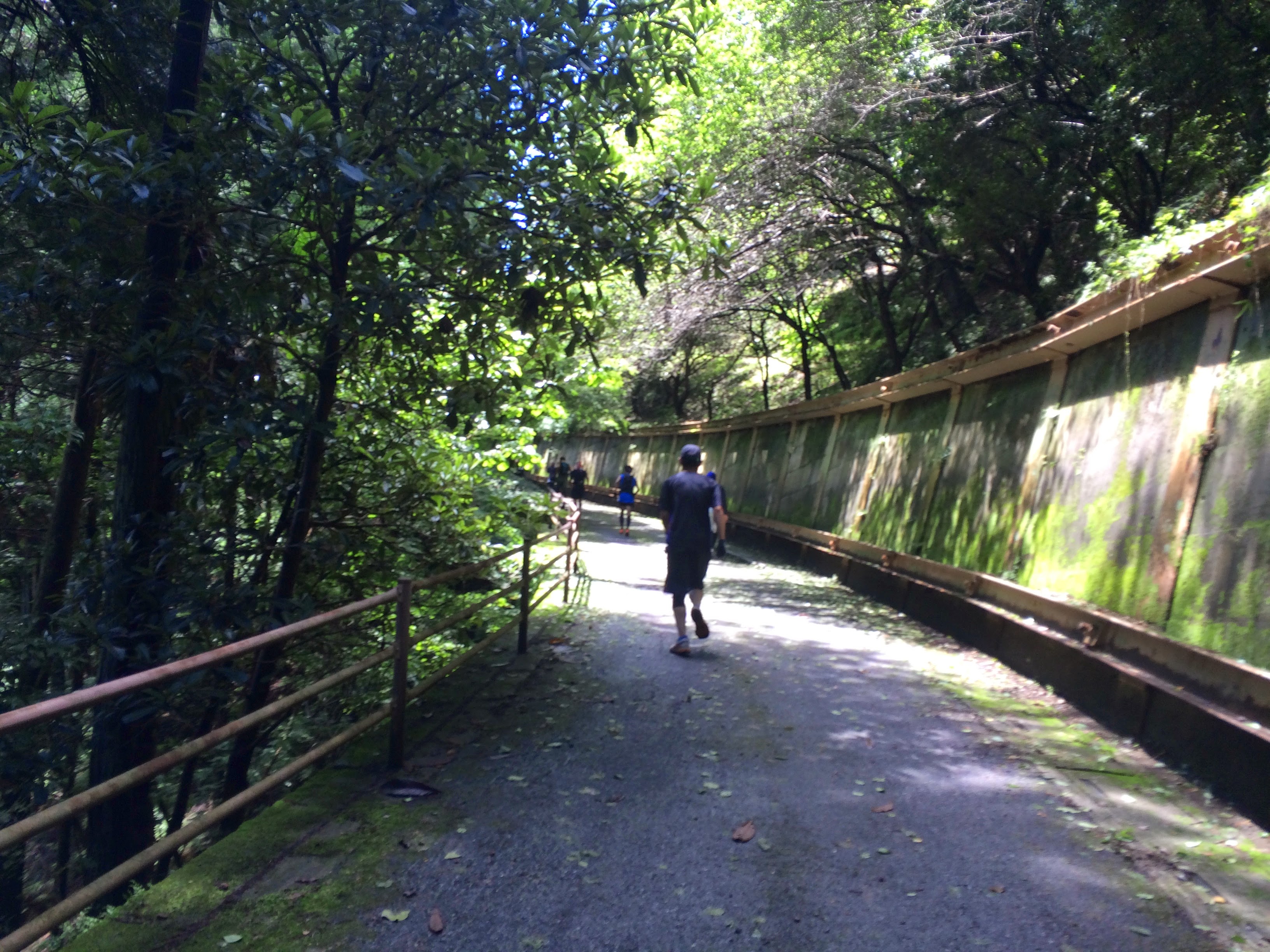 そう思ったのにキャンプ場をすぎても黙々とアスファルトの急坂をすごいスピードで登り続ける人々。時計を見ると5min/kmを切るペース。到底こんなスピードで登れる傾斜じゃないのに、みんなあまりに速いので、すぐにロードが終わるから飛ばしているんだろうと思ってついていくけれど、どんどん傾斜はあがっていくばかり。