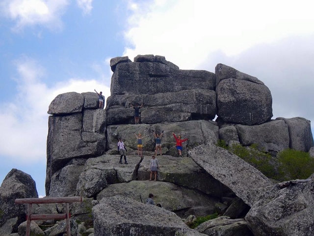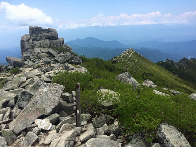 宇宙人が岩持ってきて積んだんじゃないかっていうくらい不思議な様子の金峰山山頂。