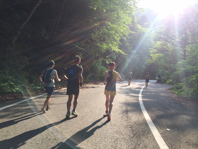 この日は「山登りだよね?山登りだよね?」という事前確認ではじまったのですが、ウルトラランナーが集って、山登りになるものかしらと思っていたら、そもそもみんなめちゃ走れる恰好じゃないですか。それ、トレランザックっていうんですよ!(笑)