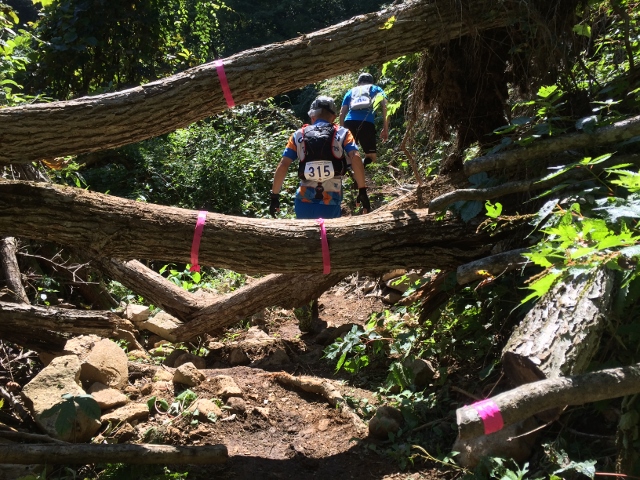 気持ちが明るくなってきたと同時に、登り始めに飲んだVESPAがやけに効いて、力が沸いてきた。腿の疲労もしだいに抜けていくような感覚がして、脚が動くようになってきた。そうすると周りの人のスピードが遅く感じて、歩く人をどんどん抜きはじめた。それがまた嬉しくて、今度は「速くエイドに着いて褒めてもらいたい」そんな気分になって、気持ちのいいシングルトラックをたくさん走って走って、4Aに着いた。