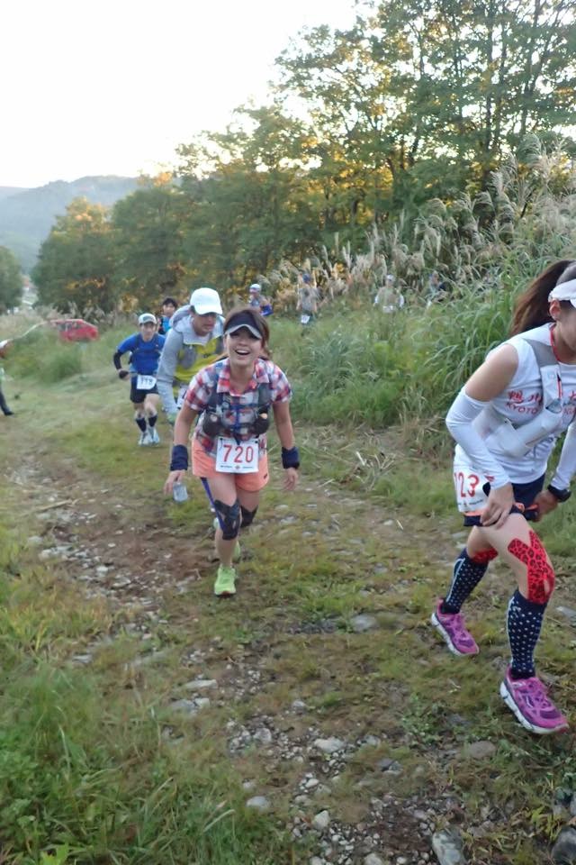 後ろから声がして、moonlight gearのチヨさんと鳥羽ちゃんのゴリさんが仲良くトレインを組んで陽気にわたしを抜いていった。いやぁ、もう、脚が疲れちゃって、そう言い訳するのが精いっぱいだった。下りきった後のエイドまでのロードで再び追いついて、一緒にA3に入った。