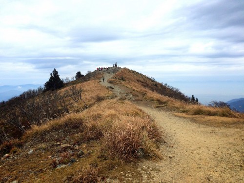 登山口からの4時間半、たった1人にしか会わなかったというのに、武奈ヶ岳の麓に着いた瞬間にどこからともなく人が湧き出てくるようにどんどん増えて、あっという間に人だらけ。半袖短パンの私は白い目で見られつつ、ランチタイムで盛り上がる麓からそそくさと登りに逃げ込んだら、焦りすぎて道を間違えた。がーん。