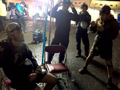 私は、相方の後半の荷物、着替え、補給、すべて自分のザックに詰め込んだ。状況によっては彼女のザックを私のザックの中にまるごと入れられるようにと大きめのザックで来てよかった。自分はヘッドライトを着けて、いつでも走り出せるようにして彼女を待つことにした。水の補給の時間さえもないことを想定して、彼女の分の水分は予備のボトルとペットボトルを持った。1本入りきらなかったボトルを片手に、準備が整ったのは16時50分、関門までまだ40分あった。