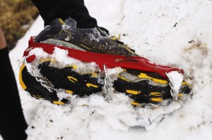 まるで靴下を履くように装着できる、モンベルの「チェーンスパイク」