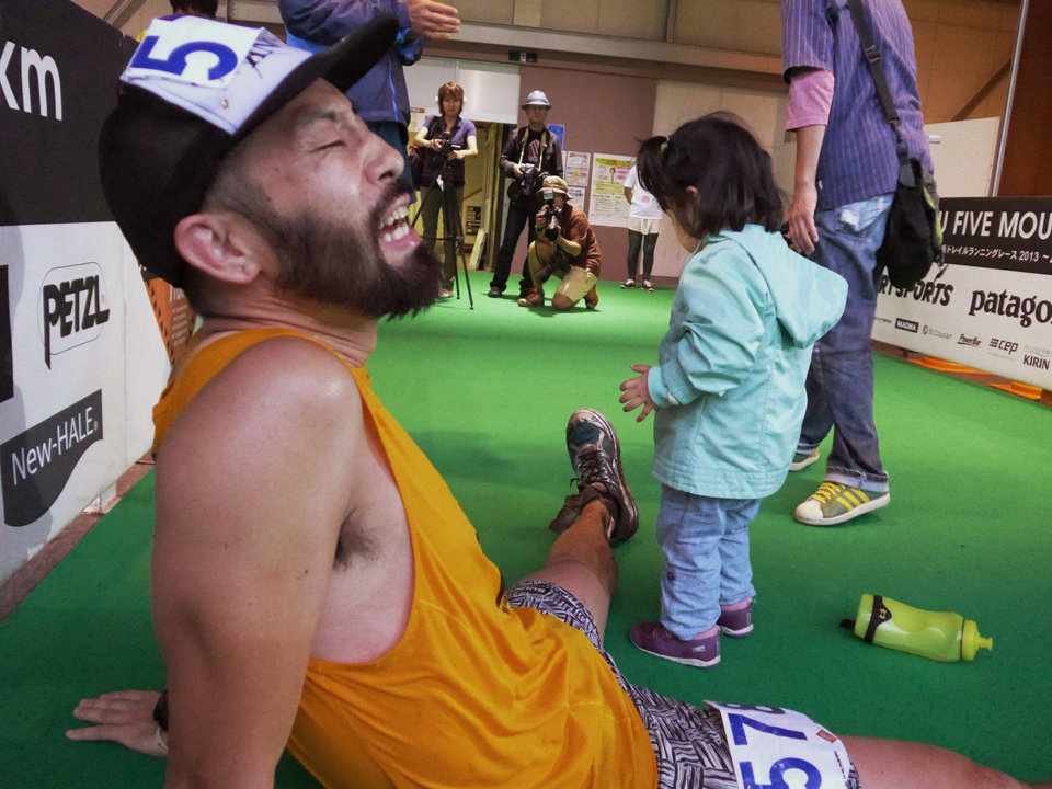 レースも中盤に入ると脚はおろか衣類もよごれ、転倒しようが雨に打たれようが、もう、どうでもよくなっちゃう。地べたに腰おろしたり寝転んだりすることもいとわなくなります。体裁がとっぱらわれる感じ。