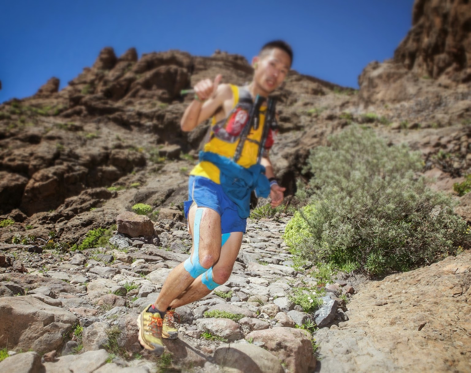 今までのトレイルランニング歴の、5年分まとめてコケたんじゃないだろか。後半に脚が終わった状態で、しかも普段どおりに膝が曲がらないので、とっさの踏ん張りが効かない。少しでもつまずいたり、ステップを間違えたりすると、簡単にひっくりかえる。滑る、コケるなんて生やさしい感じではなく、完全に天を仰ぐ。すでに肉が露出してしまっている手のひらがさらにえぐれる。その新しい血でまた気合が入る。集中!