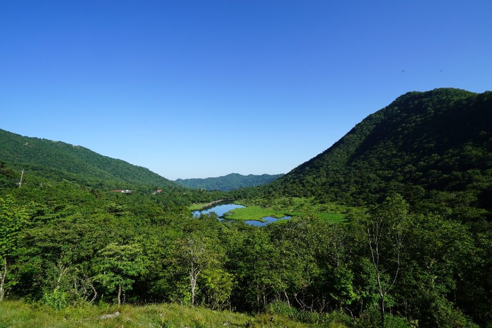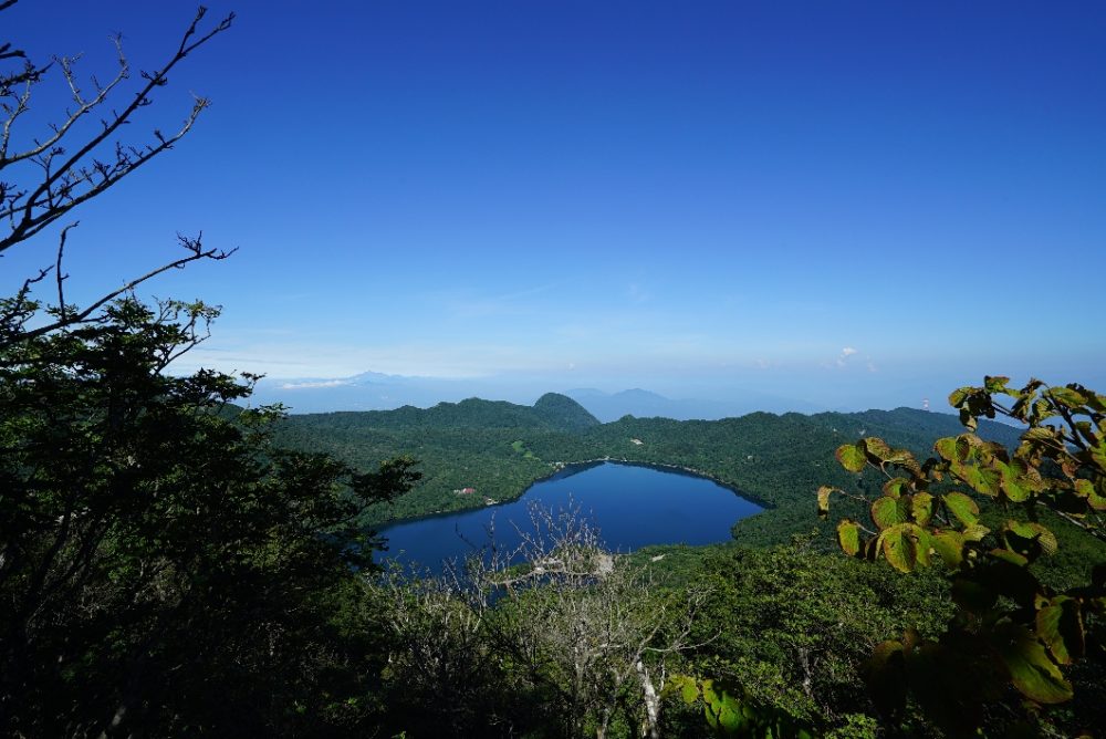 途中には絶景が広がるポイント。先に見えるのが小沼。その延長線上には富士山が見えました。