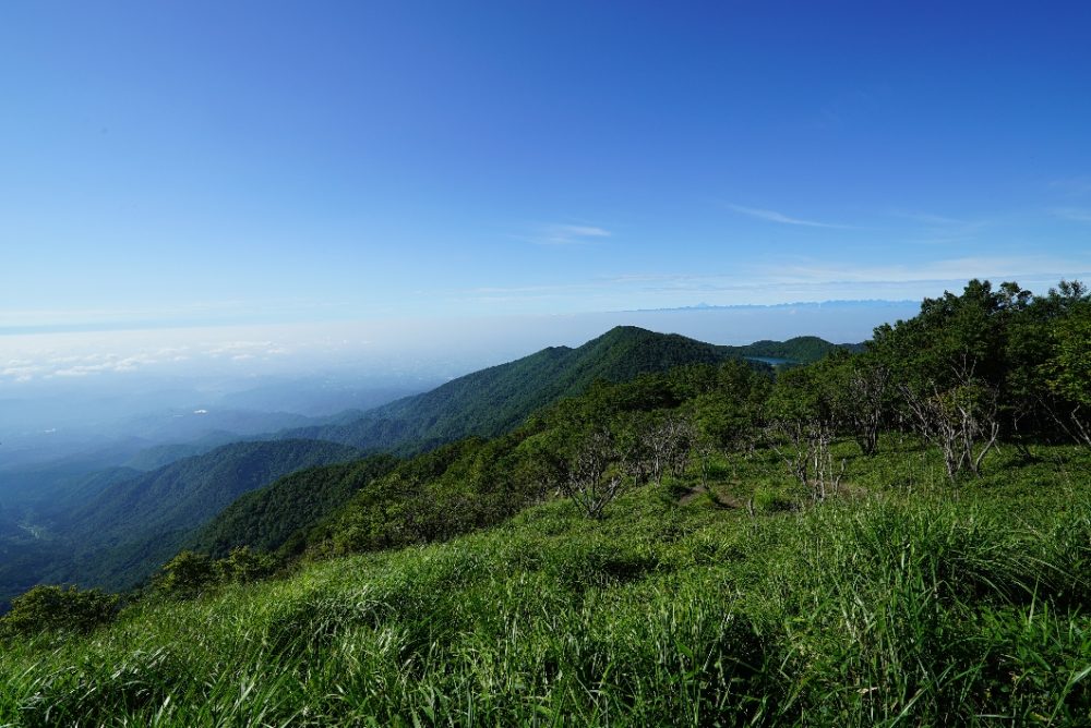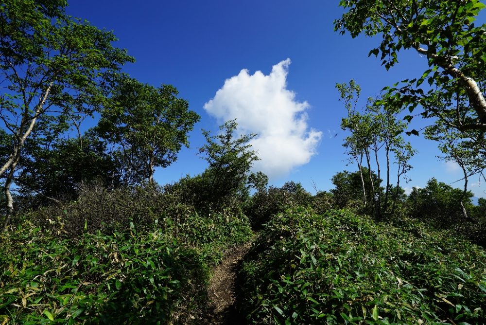 夏の山は気まぐれで、登ってる最中から雲がもくもくと発生してきましたが、山頂まではなんとか景色も良好な旅を楽しむ事が出来ました。