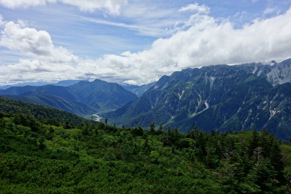 途中、槍見台という休憩箇所からは北アルプスらしい景色が見えだしテンションが上がる!
