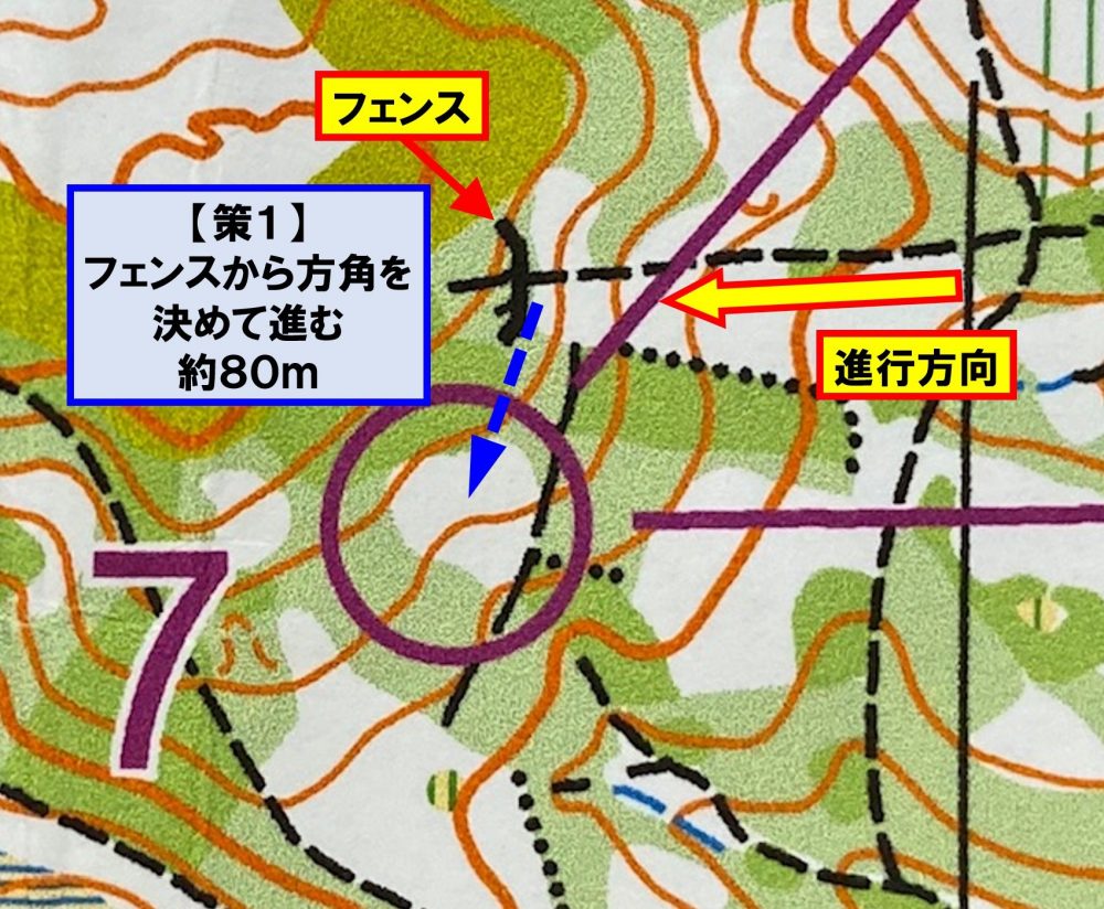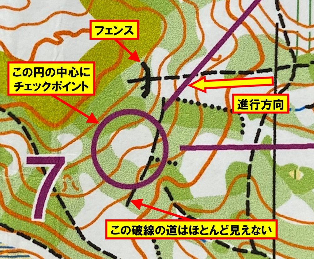フェンスの南側、〇の中心に7のチェックポイントがあります。