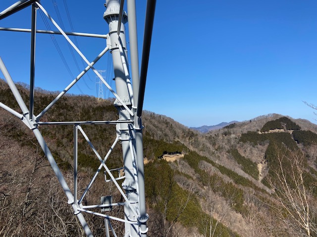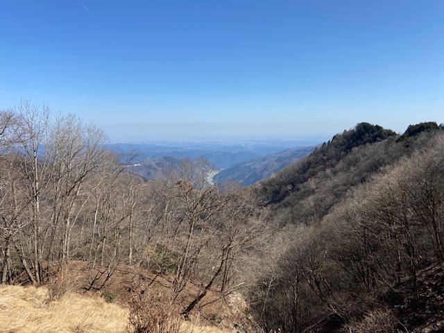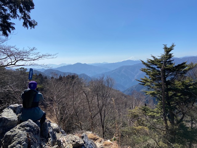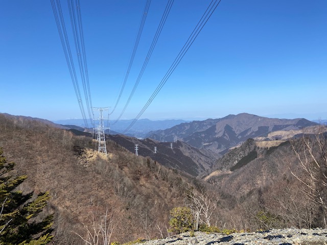 有間峠へ到着。スタート直後に眺めた奥の稜線まで来ました。