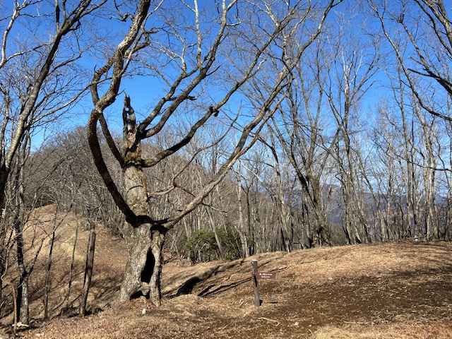 防火帯の広く気持ちの良い尾根を少し登り、有間峠への分岐へ。