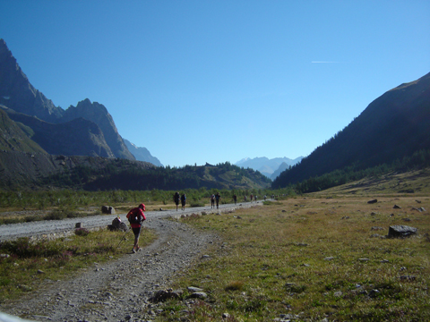 私がよく友人に話していることですが、UTMBはスタート直後の8㎞の車道と林道をキロ8分で走れば後はずっと早歩きで必ず完走できます。UTMBはトレイルランニングのレースではなく、トレイルウオーキングのレースなのです。このことをしっかり理解ないと失敗してしまいます。UTMBとは「小学生の高学年の生徒でも歩ける安全かつ容易なハイキングコースを使った、昼間は暑く夜は氷点下まで冷え込む可能性のある気象条件下で行われる、超長距離の早歩きのレース」です。
