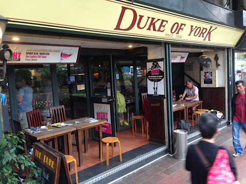 2人ともこの店には4〜5年ぶりぐらいですが、昼間から酔っぱらって赤い顔をしている西洋人が競馬中継を見たり、ビリヤードをやっている光景は少しも変わっていません。何かヨーロッパにいる気分になります。