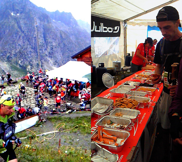 そしてエイドでのサポートの内容もかなり違います。聞くところによるとUTMFでは友人のサポーターがもろもろ準備してエイドで待っていてくれて、シュラフや毛布にくるまって休憩することもできたようですが、UTMBではサポートは一人までで、サポーターのザックは35L以内、サポートできる区間もエイド内とそこから前方500m以内です。そして大半の人はサポートなしだと思います。