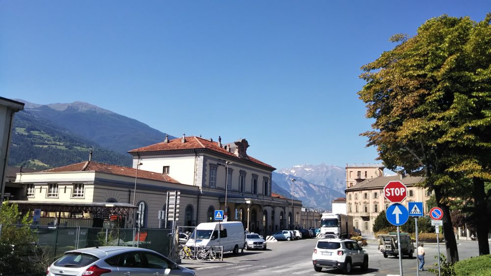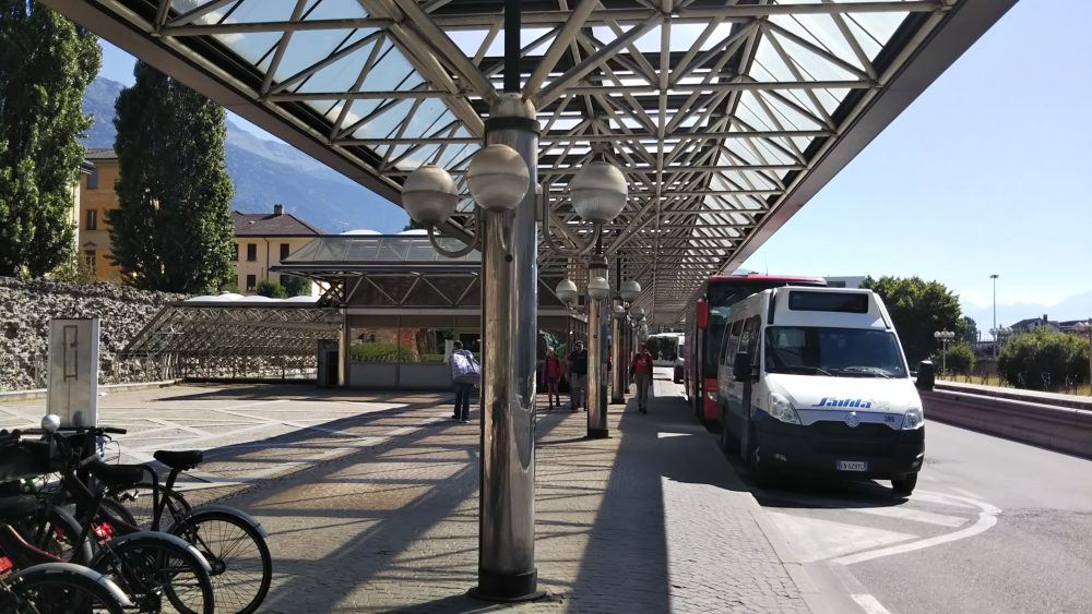 アオスタ駅前のバス乗り場、ここからコーニュへ