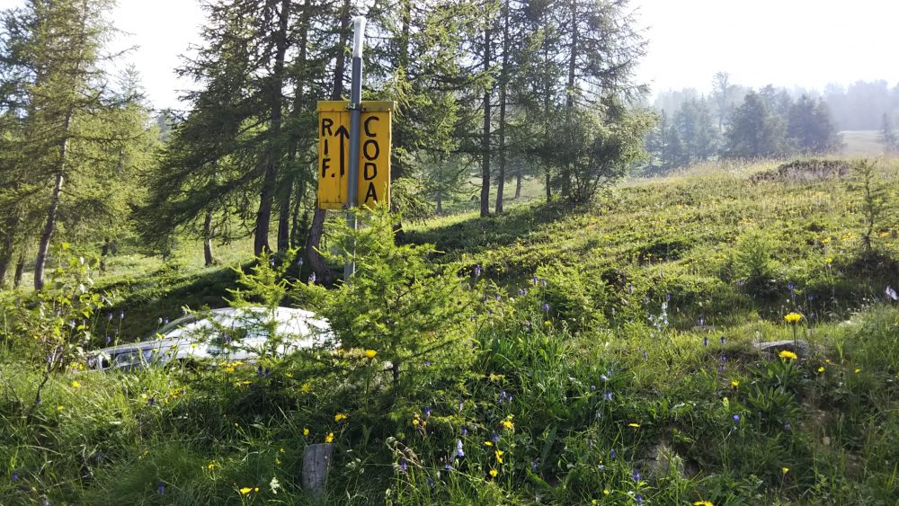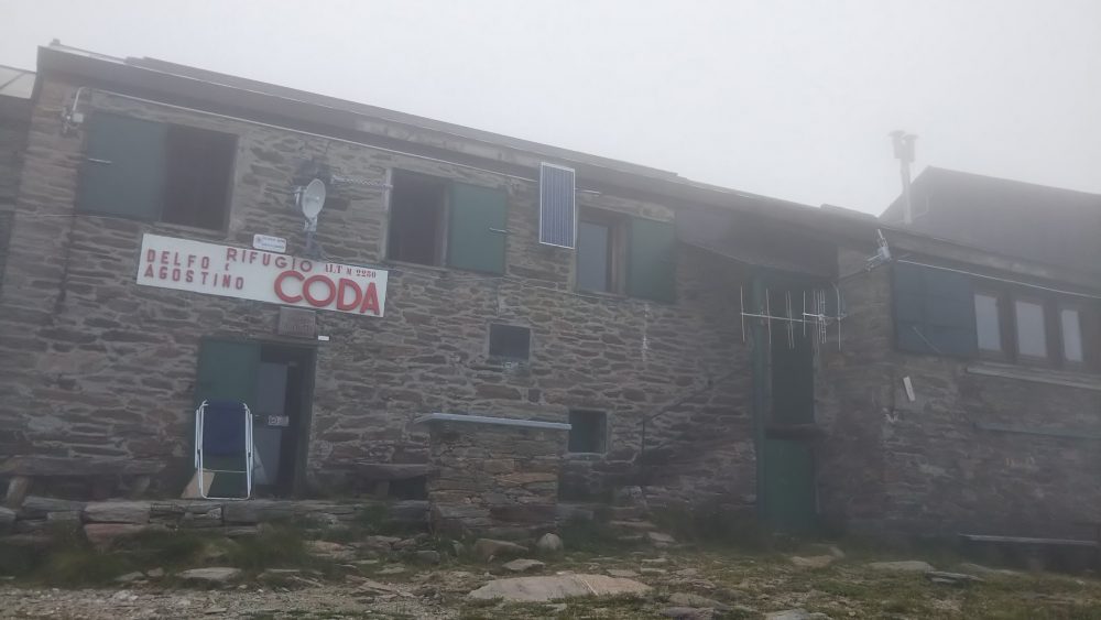 稜線に上がって10分ほどでコーダ小屋に到着。3時間10分とまずまず。