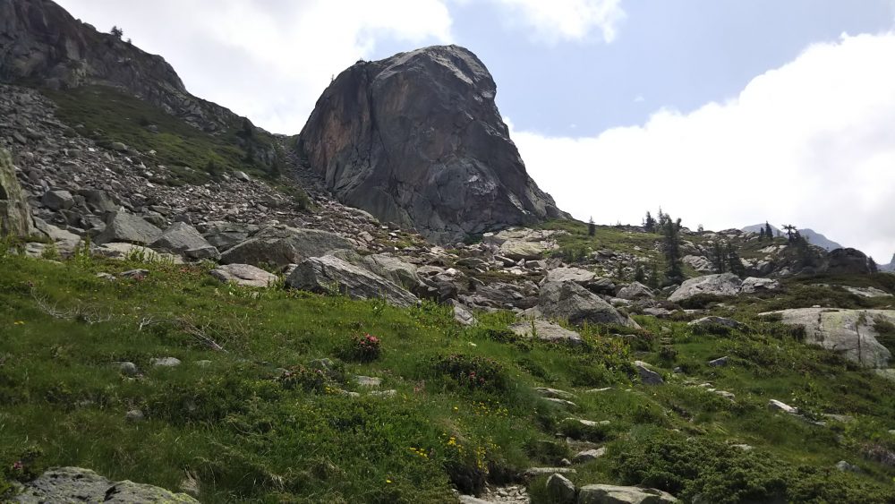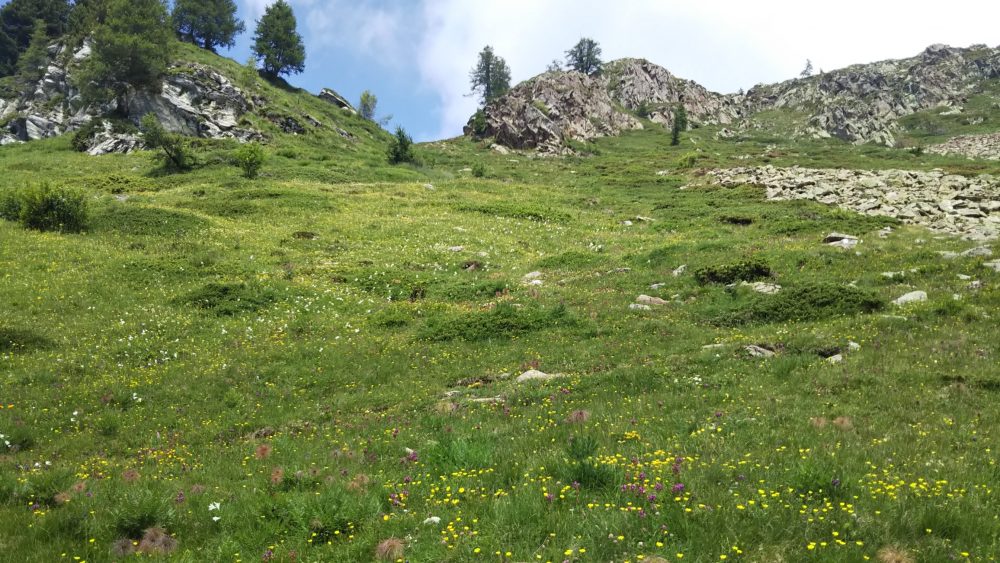 ニエルへの下りはかなり急で、草が茂っていて岩が滑りやすいので時間がかかります。