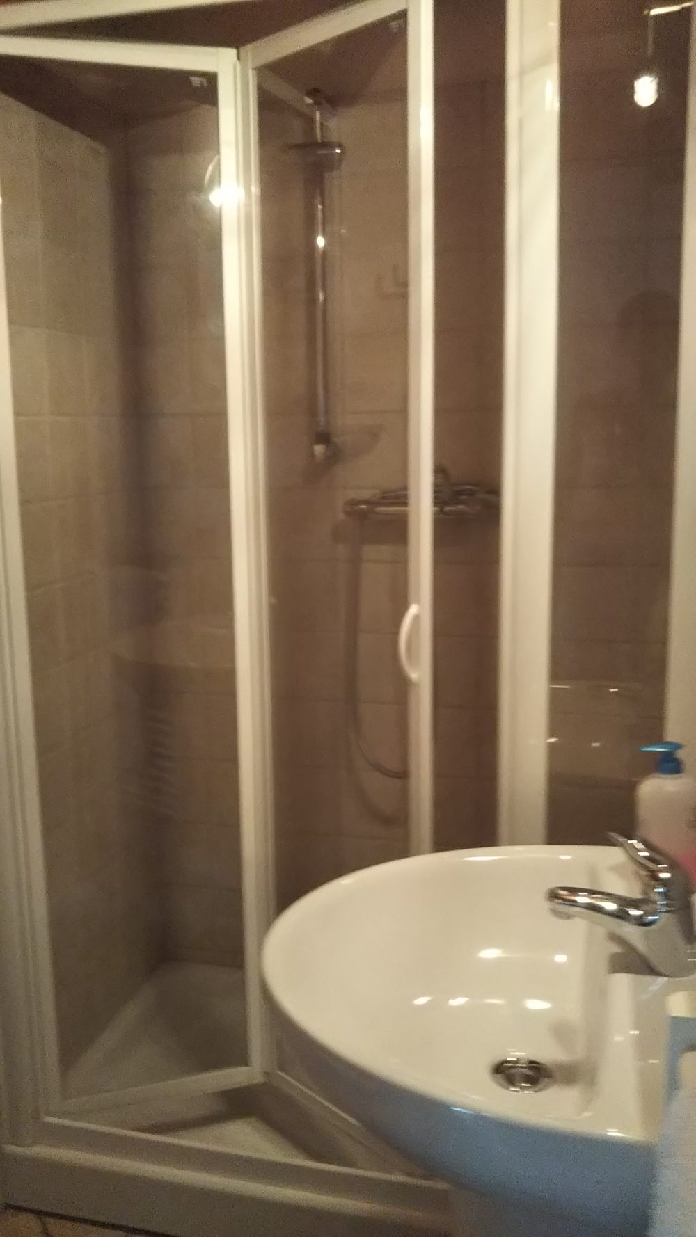 キレイで広めのシャワーブース、アメニティも揃っていて、ベッドは2段ベッドだけど日本の山小屋ではあり得ないクオリティ。