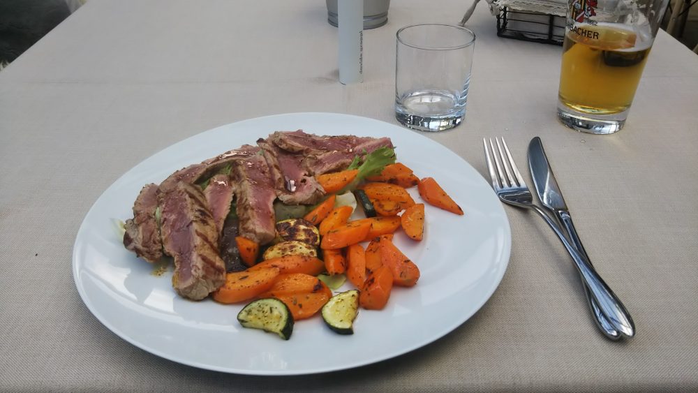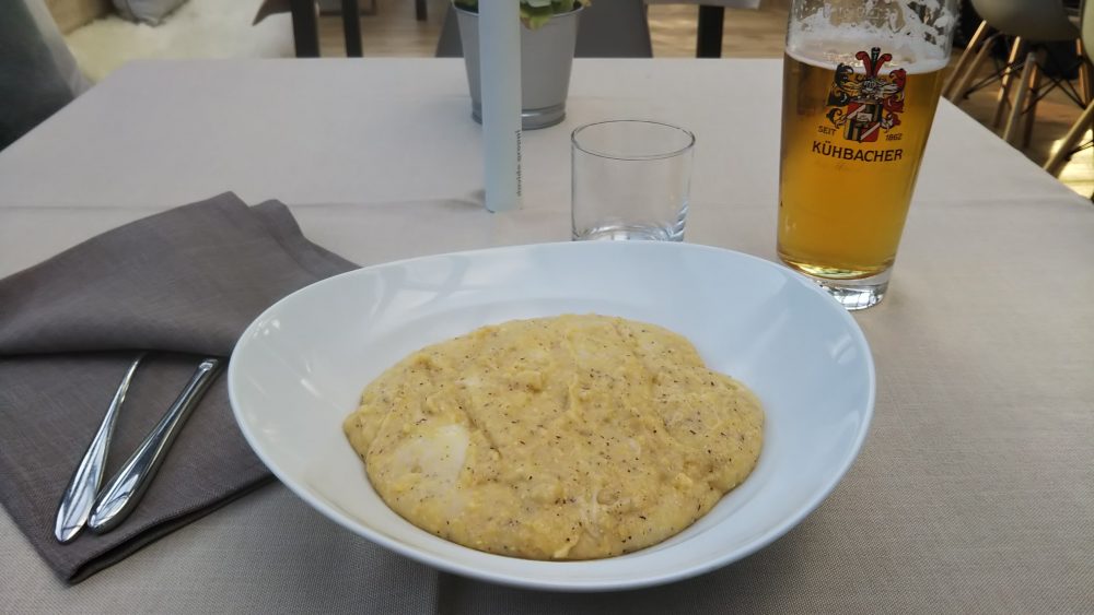 そして夕食がスゴイ! 色々な種類から選べるので、ポレンタとステーキをチョイス。いやー旨い。