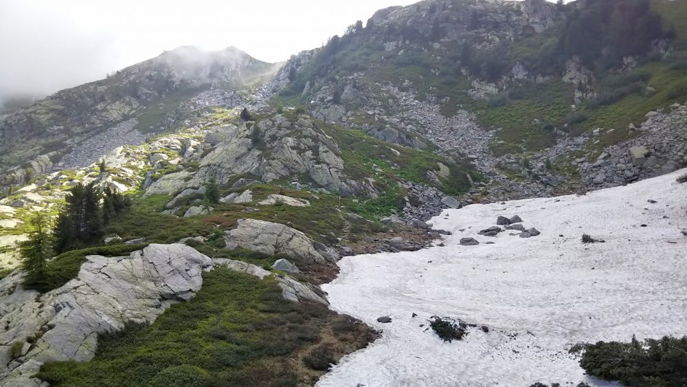 2000mまで上がると緩やかになり、2200mの稜線まであと少し。途中雪渓もあり。