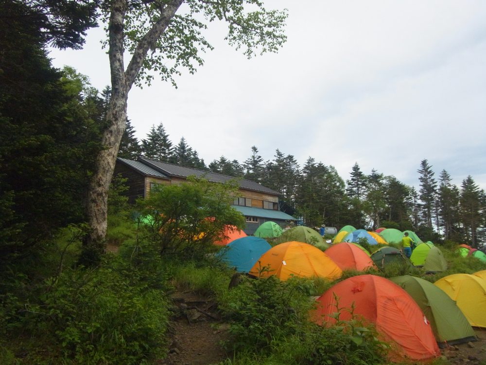テン場がいっぱいになることがあるので早めの到着をオススメします。小屋のカレーはおいしいですよ。
