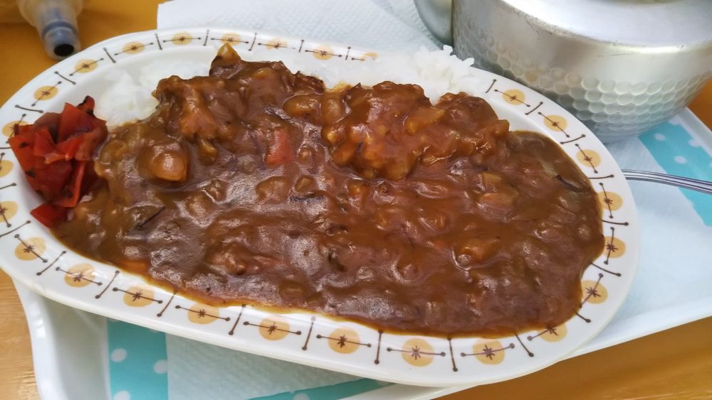三伏峠には10時間ほどで到着し、小屋で選手盛りのカレーをいただきながら小休止。