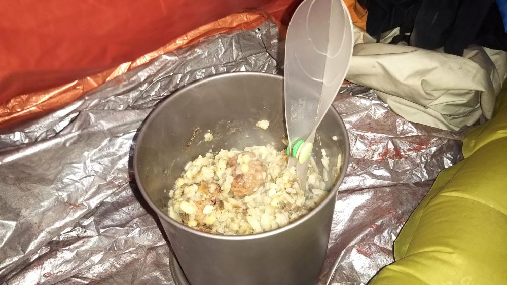 今夜のビバークレーションには鶏つくねをトッピング。鉄板の組み合わせ、美味しさです。