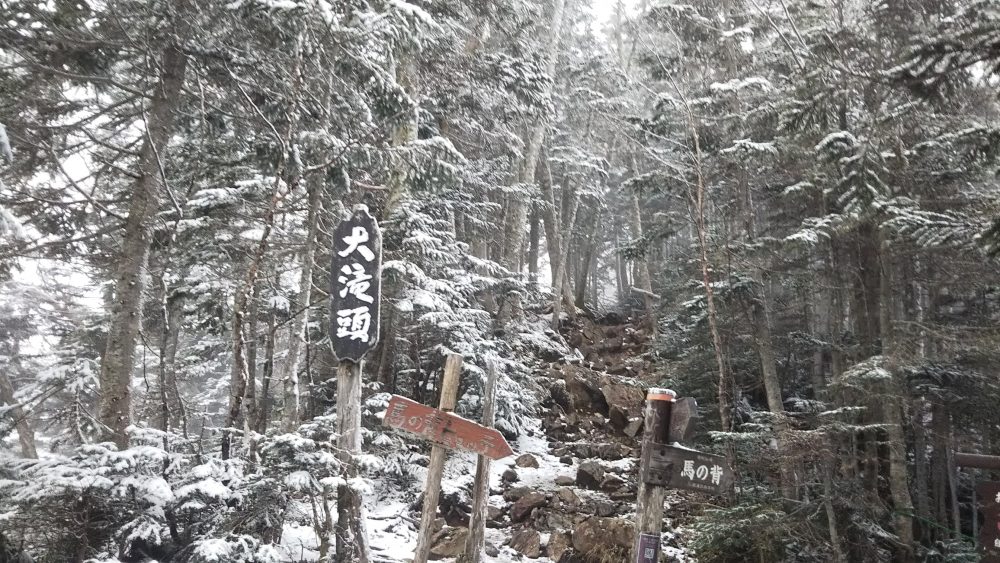 北沢峠の手前で雪は雨に変わるもやまず。