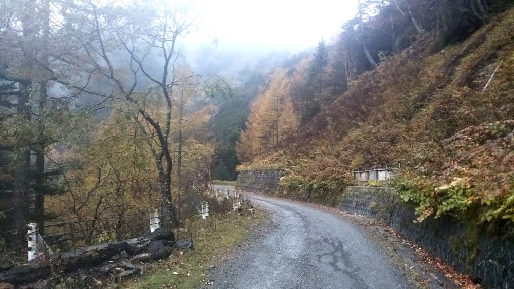 雨と紅葉の林道