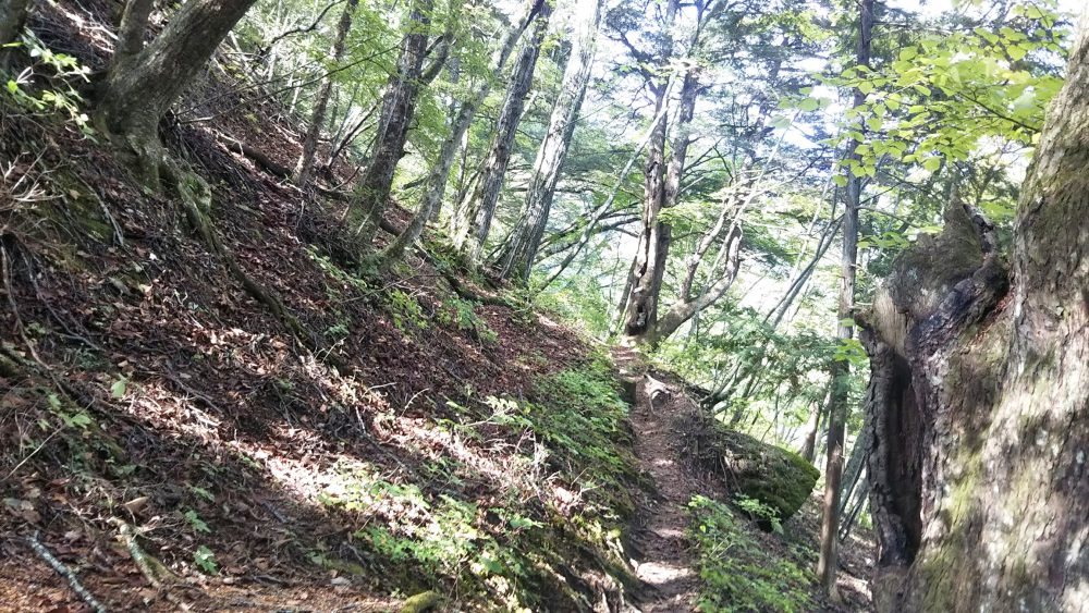 序盤は所々なだらかなところもあり、穏やかな樹林帯を進みます。