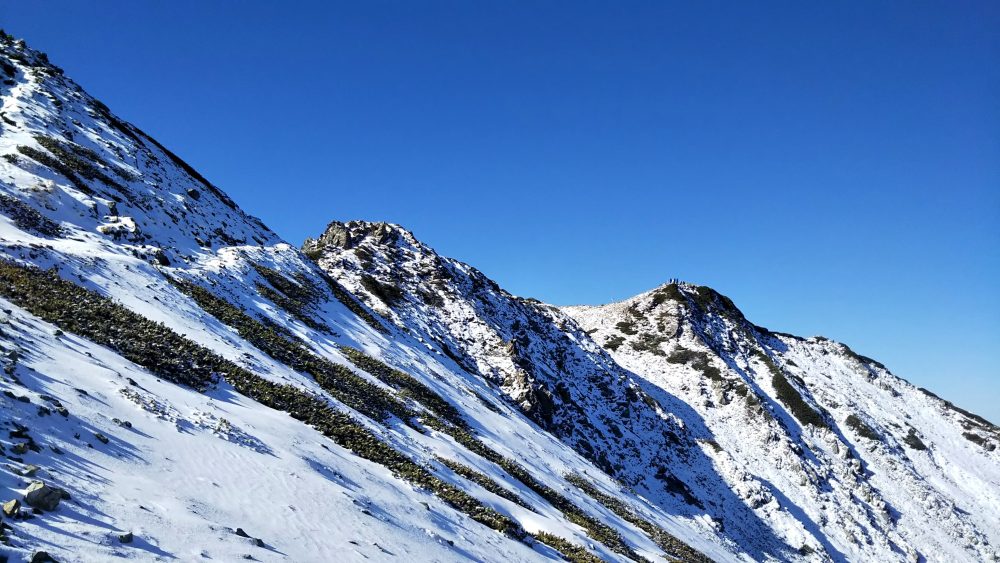 甲斐駒は厳冬期でも雪が少ないので、このコンディションは珍しいです。
