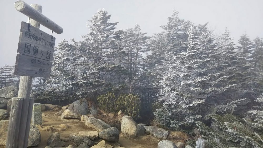 国師ヶ岳に着くと白と土のコントラストがキレイ。