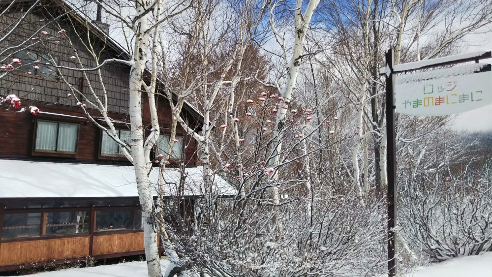 金曜日は信州中野インターからちょうど雪が積もるなかを奥志賀高原のロッジやまのまにまにへ。