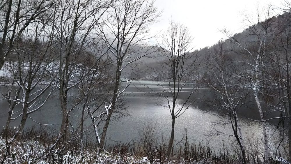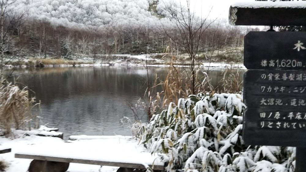 田ノ原湿原、木戸池は雪少なめ。