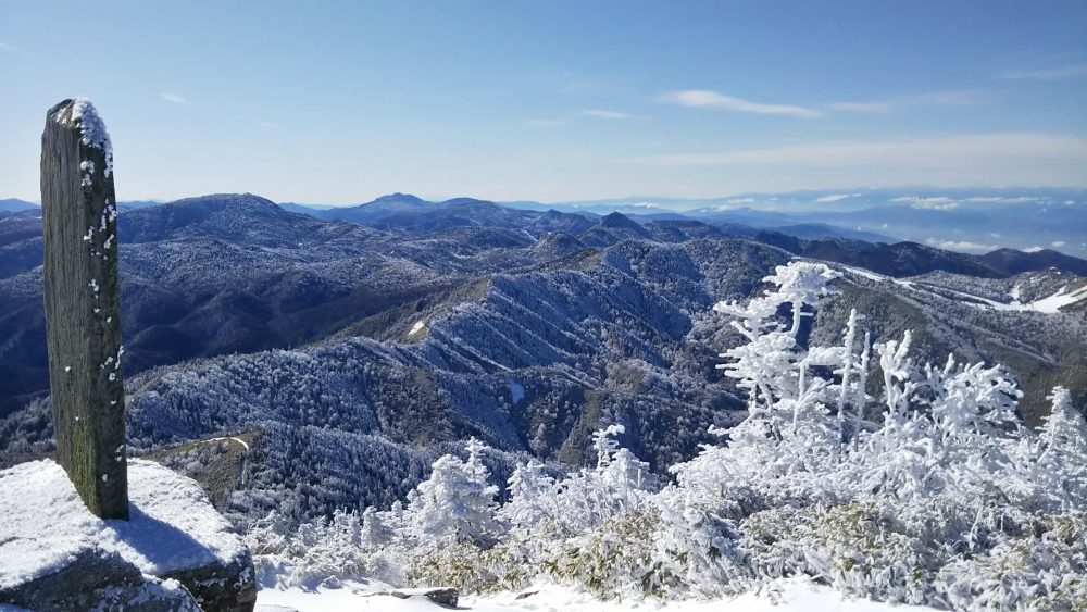 2日目は6時半にスタート、マイナス5℃くらい、昨日と同じくエクストリームのコースで一ノ瀬手前まで行き岩菅山へ。