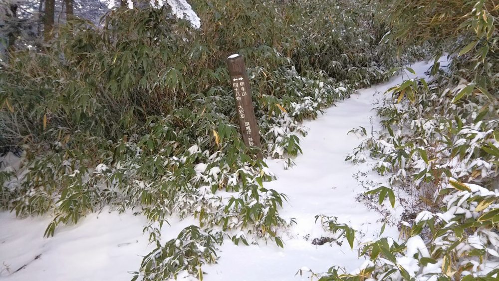 気温は0℃前後、時折小雪が舞う中を進みます。