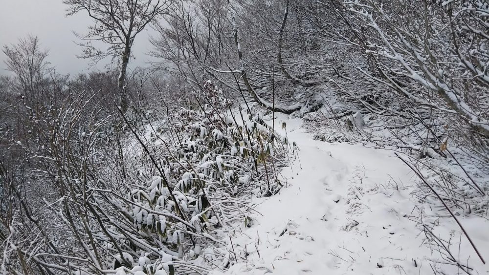 さらに標高1000mオーバーあたりからは雪もかなりついていて慎重に。