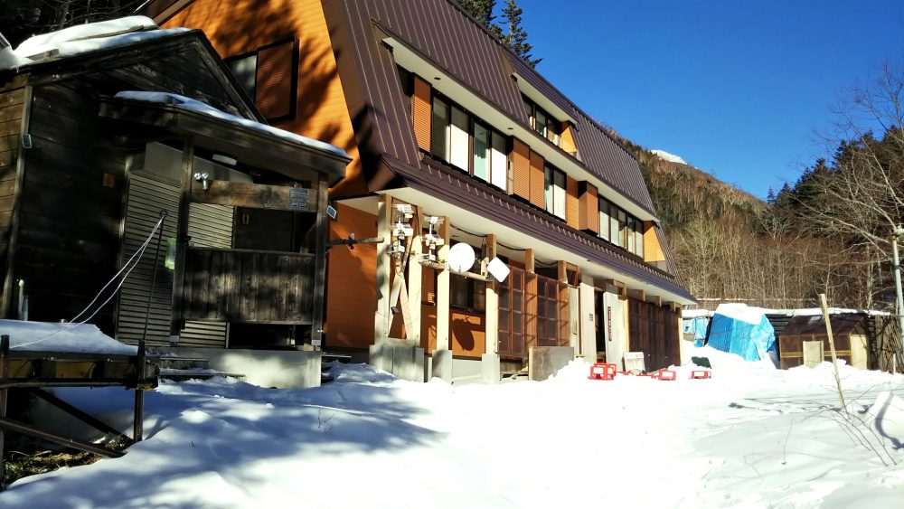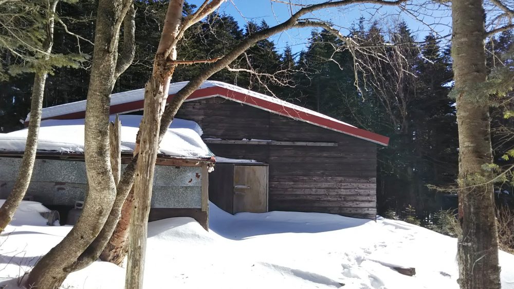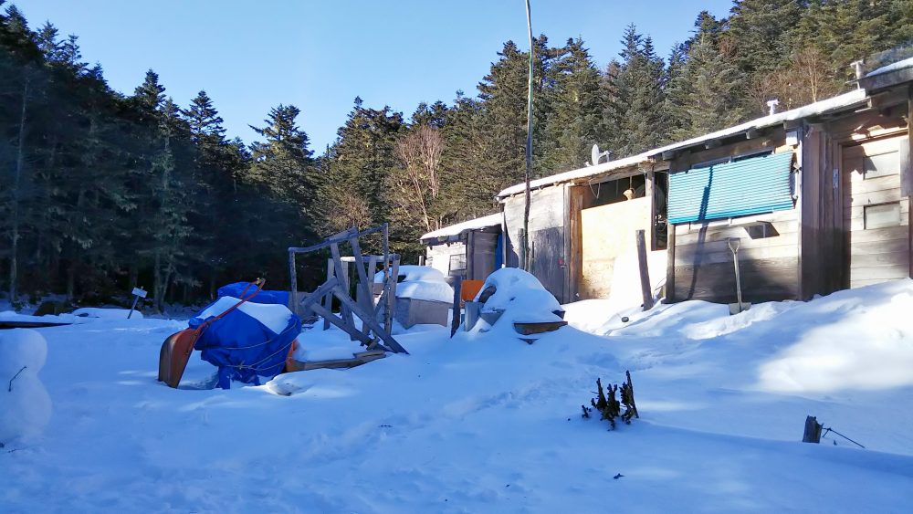 当然トレースは無く人の形跡は無し。早川小屋の入口は雪で半分埋まっていました。