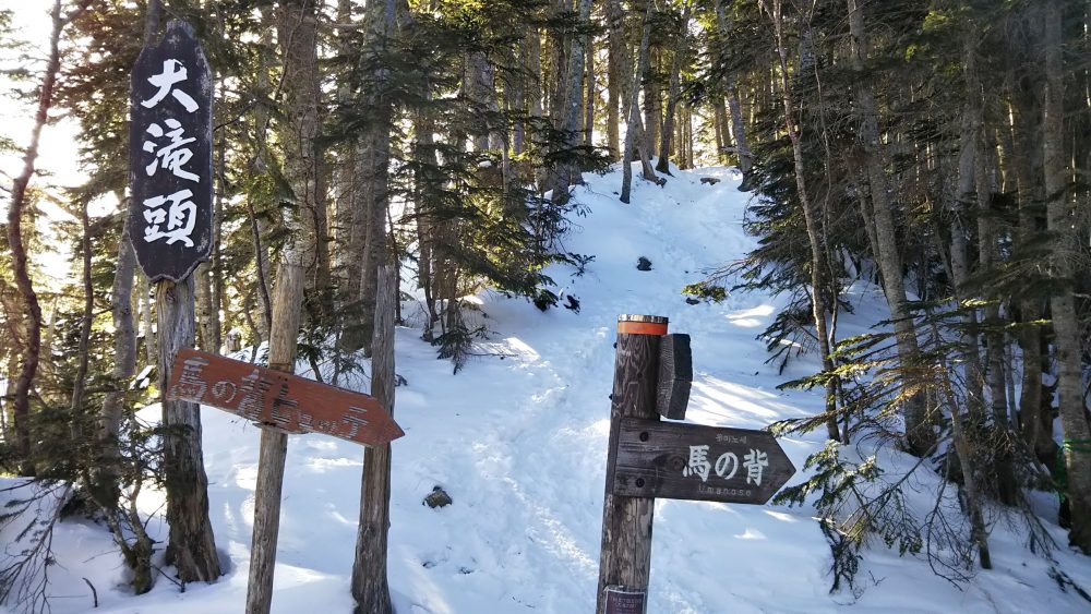昨日までよりも少し暖かく、風も強くないので、すこし暑くなりウェアを調整したりしながら2時間弱で大滝ノ頭に到着。