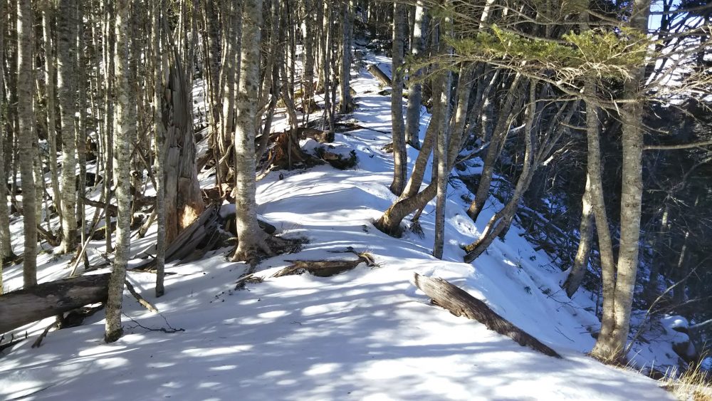 徐々に明るくなり始めます。直線的にいければ4,5kmは短縮されるのですが、トラバースをしながらクネクネと進みます。