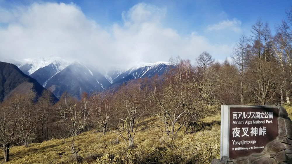 夜叉神峠まではほぼ雪なし、白峰三山はガスがかかり雪煙が舞っていました。
