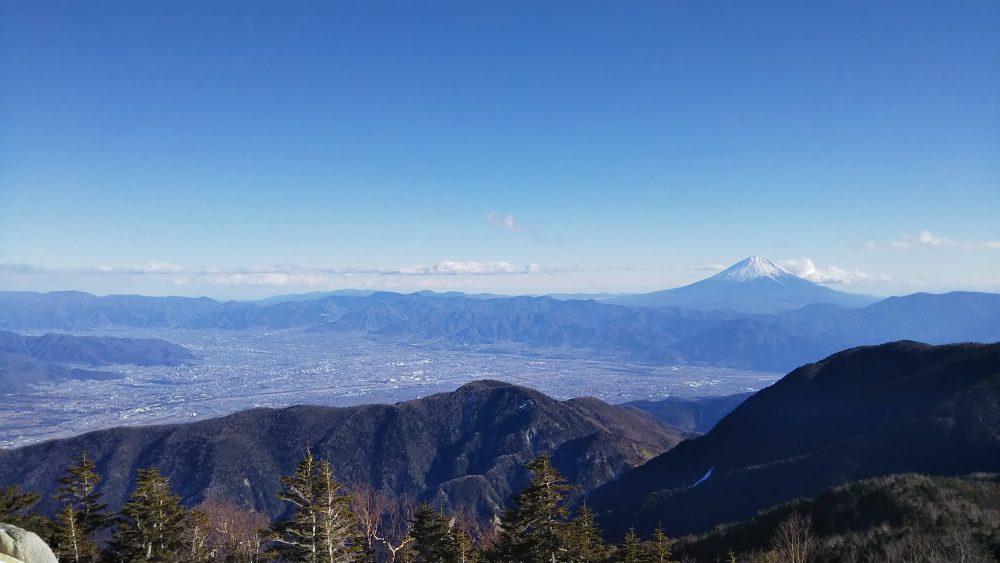 9時にスタート。山梨側は晴れ間も見え、かなり寒いものの14kgのザックを担いでゆっくり登ります。