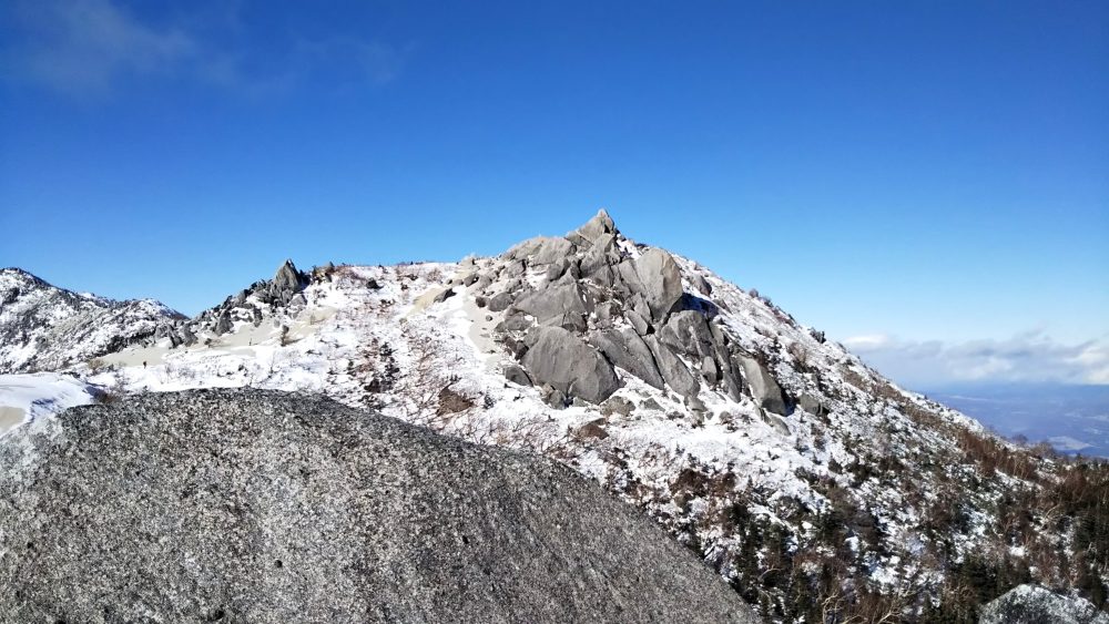 白峰三山側からの風がものすごく冷たく鼻先が少し寒い… バラクラバも3レイヤーにすべきだったか…