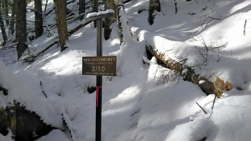 鳥倉登山口から三伏峠までは、写真のような10分のいくつという目印があり目標になります。