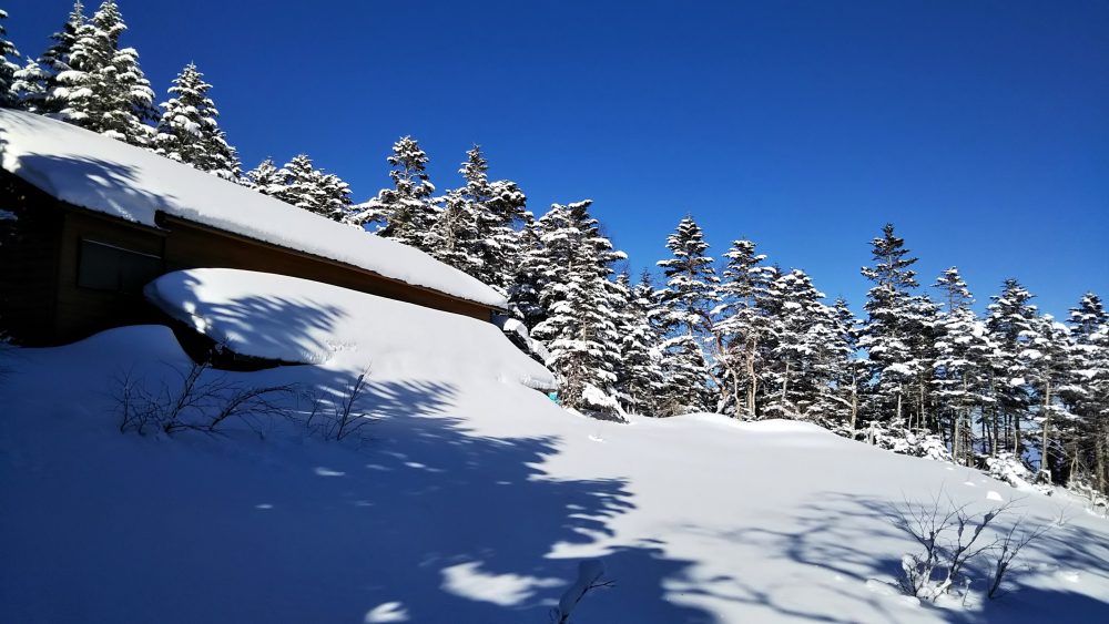 明るくなってみるとあらためて新雪の小屋といった感じ。