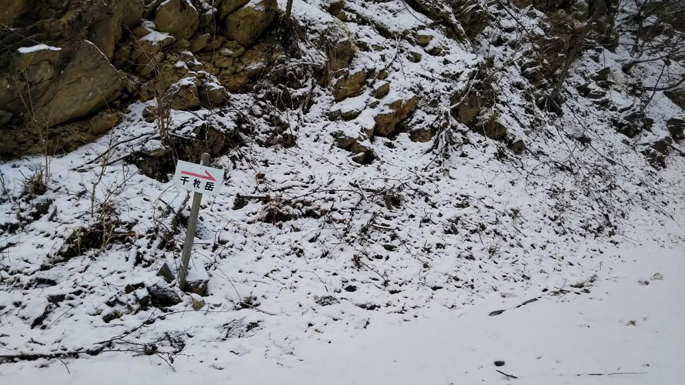 ここから途中の林道まで急登、雪がうっすら積もっていて少し滑りやすい。