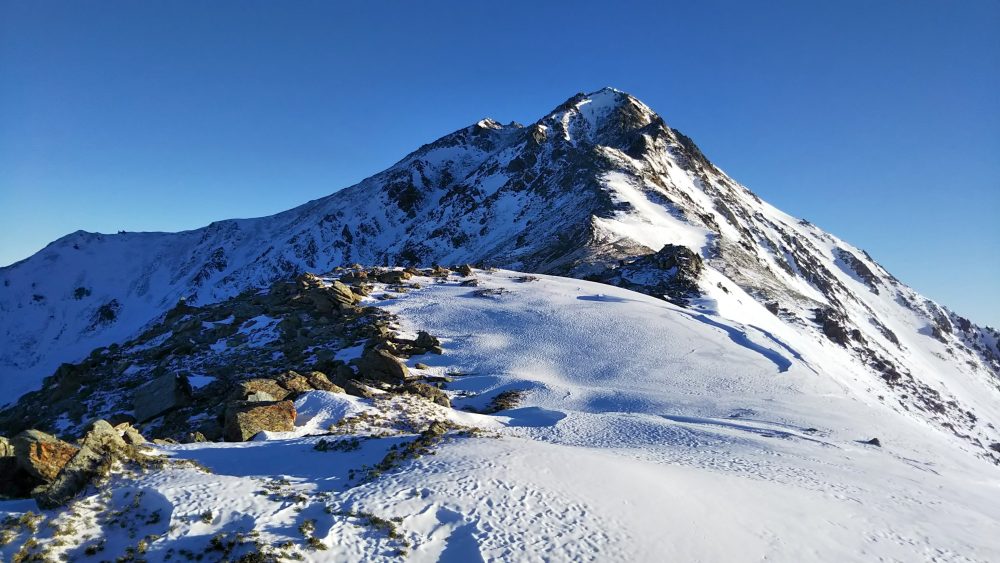 途中長い雪面のトラバースが1か所ありましたがここもアイゼンがよく効き問題なし。