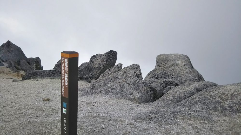 薬師岳から先はガスの中、トレイルもウェットで滑りやすいのでゆっくりと。