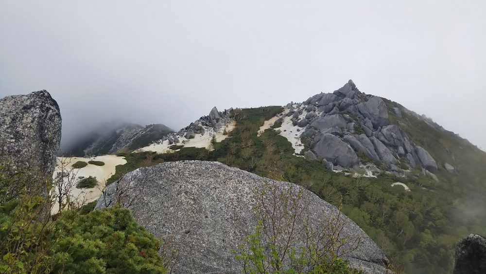 ここから先はハイマツがトレイルにけっこう出ていたりしてスピードが落ちます。